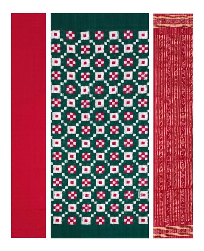 SAMBALPURI BANDHA CRAFT sambalpuri cotton dress material set(Pasapalli design in green white and red colors combination)