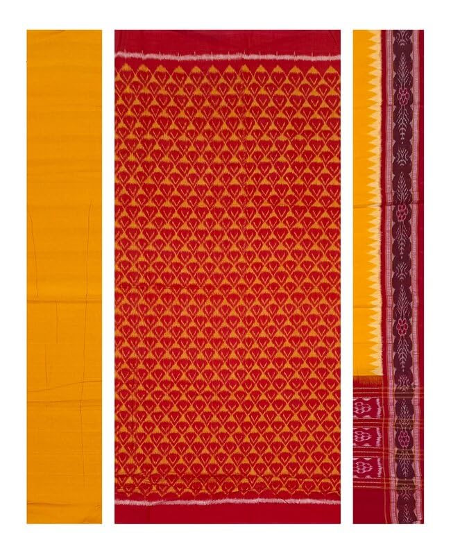 Traditional sambalpuri cotton dress material set in red and yellow colors combination