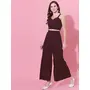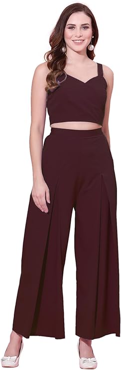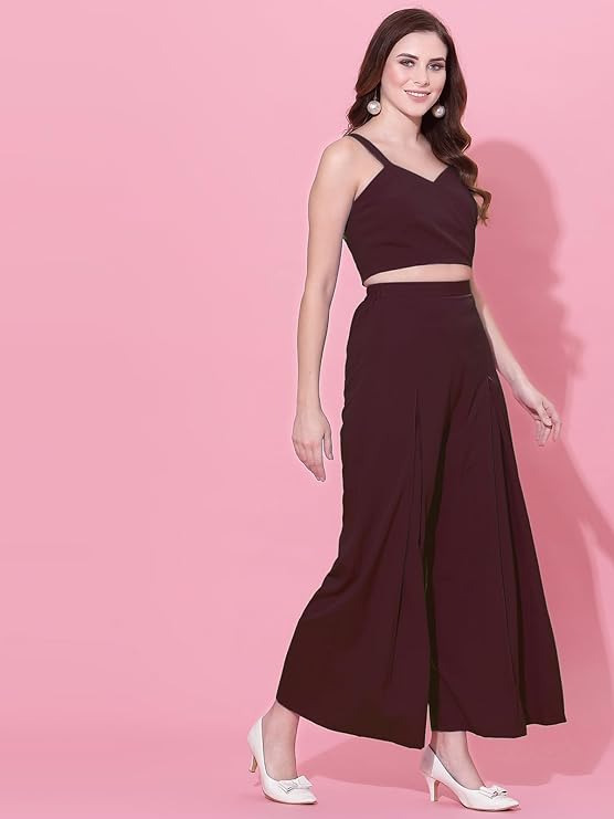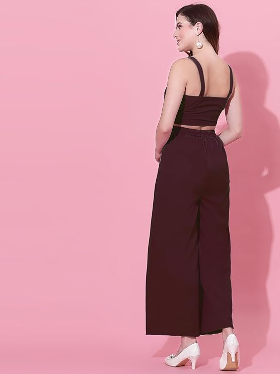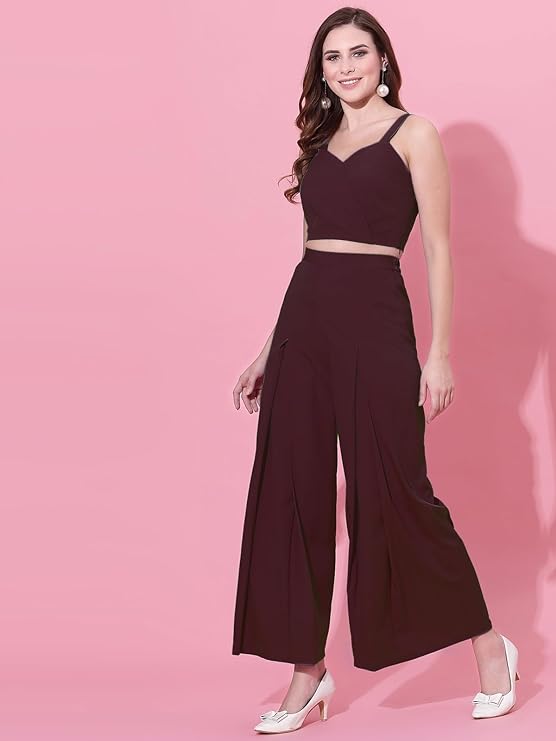 SIRIL Women's Co-ord Set Sweatheart Neck Solid Crepe Crop Top with Flared Plazzo Set | Top and Bottom Set