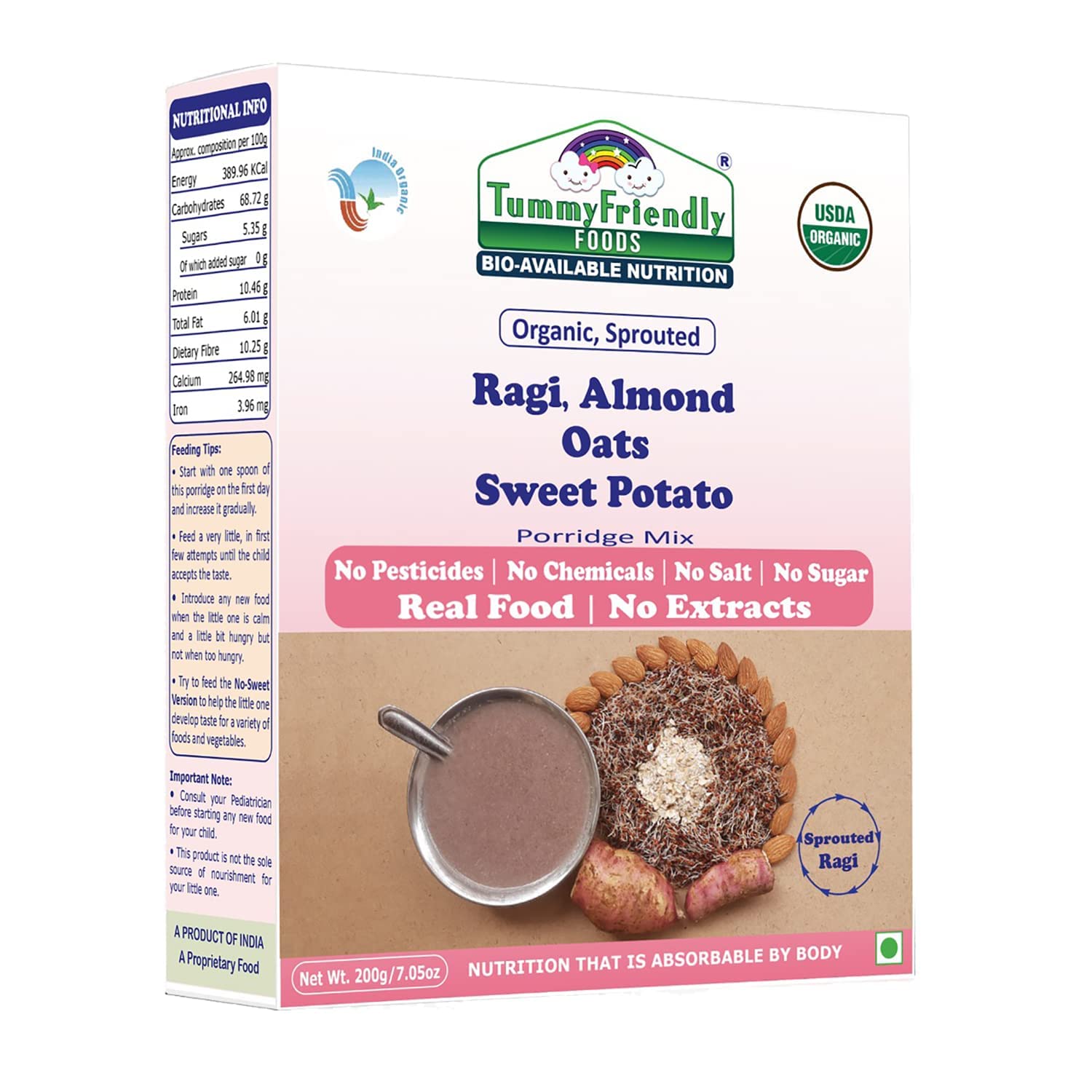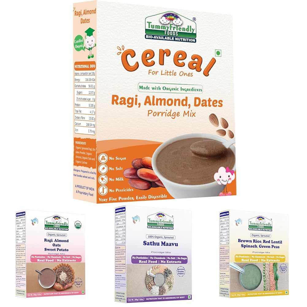 Tummy Friendly Stage3 Organic Cereal for Little Ones Monthly Combo. Sprouted Ragi Oats. Available in Baby Trial Packs. Real Food No Harmful Ingredients. Shelf life 6 Months