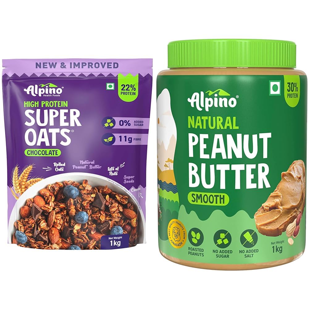 Alpino Peanut Butter Super Oats Chocolate Super Oats + Peanut Butter 1 kg each combo