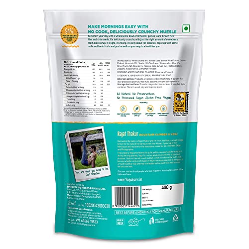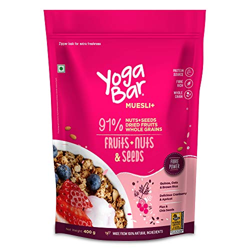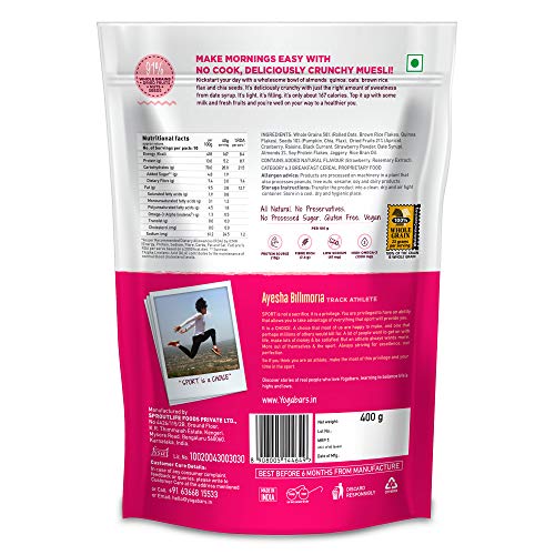With delicious crunchy clusters of quinoa oats brown rice nutrient dense flax and chia seeds and fibre rich fruits and nuts -Fruits Nuts and Seeds muesli will kick start your mornings and unlock the power of your day. Key Features : "Lean and Fit: Fruits Nuts and Seeds 92% Whole grains + Nuts + Seeds Made from 100% Natural Ingredients Whole grains: Quinoa Oats and Brown Rice Rich in Nuts & Dried Fruits: Almonds Rasins Cranberries Apricot Rich in Seeds: Pumpkin Chia and Flax Rich in Protein 6.0g and Fibre 4.0g per serving Omega 0.5g Light yet filling breakfast Gluten free ingredients Zero processed sugars No added artificial colours flavours preservatives or stabilizerWith delicious crunchy clusters of quinoa oats brown rice nutrient dense flax and chia seeds and protein powered Almonds and Quinoa - Almond + Quinoa muesli will kick start your mornings and unlock the power of your day. Key Features : Protein Power: Almond + Quinoa crunch 92% Whole grains + Nuts + Seeds Made from 100% Natural Ingredients Whole grains: Quinoa Oats and Brown Rice Rich in Nuts: Almonds Rich in Seeds: Sunflower Watermelon Chia and Flax Rich in Protein 7.3g and Fibre 4.1g per serving Omega 0.5g Light yet filling breakfast Gluten free ingredients Zero processed sugars No added artificial colours flavours preservatives or stabilizer