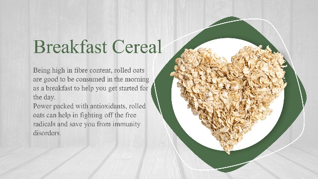 BREAKFAST CEREAL: Being high in fibre content rolled oats are good to be consumed in the morning as a breakfast to help you get started for the day.