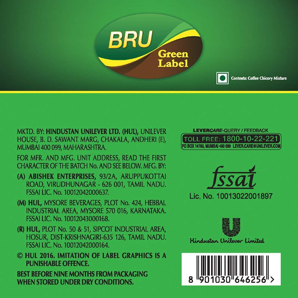 BRU Green Label Filter Coffee is what you need to start your day. This is sourced from the finest coffee beans which are roasted and ground to perfection. Then the new and enhanced process ensures that the fresh coffee aroma is preserved so that you get a rich coffee taste beyond comparison every single day. Buy this product online now.