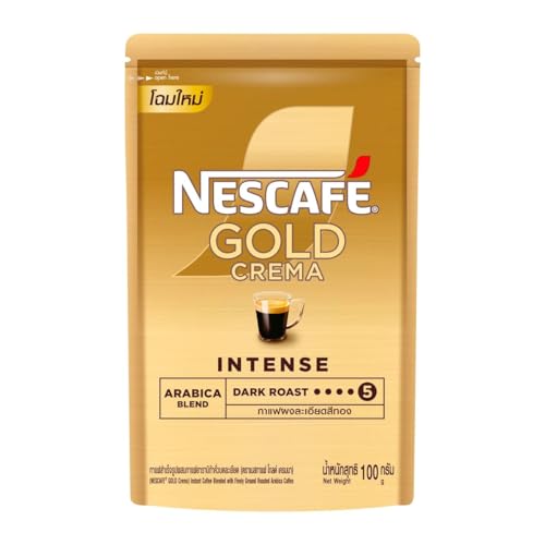 Nescafe Gold Crema Intense Instant Coffee Bag Blended With Finely Ground Roasted Arabica Coffee Dark Roast 5 3.53 Oz 100 G