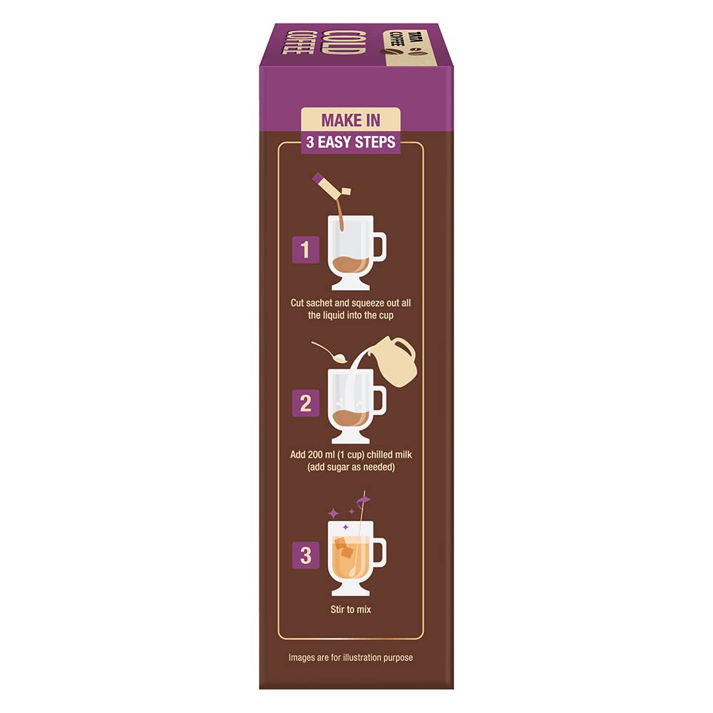 Tata Coffee brings to you a firstâofâitsâkind Cold Coffee Liquid Concentrate Range specially designed to make cafe-style delicious cold coffee that is so rich & creamy yet easy to make! Now you can enjoy a cafe-style coffee experience with Tata Cold Coffee Choco Mocha. It's everything you love about cold coffee. Explore the irresistible range of flavors Classic & Salted Caramel. USAGE INSTRUCTIONS: Make it in 3 easy steps. Cut sachet and squeeze out all the liquid into the cup. Add 200ml (1 cup) chilled milk (add sugar as needed). Stir to mix. STORAGE INSTRUCTIONS: No Shaker/Blender is required. Don't consume if the packet is puffed/leaky. Once opened consume fully.