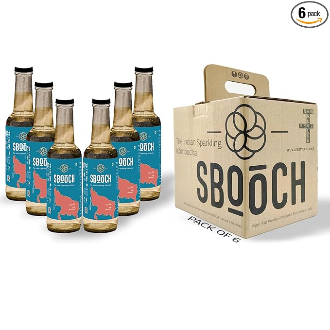 SBOOCH - Indian Sparkling Kombucha Tea is a wellness beverage crafted to support your health journey. Brewed with a blend of tea, filtered water, and kombucha culture, this antioxidant-rich drink is your go-to for gut health and digestion. Free from artificial flavors, preservatives, and additives, SBOOCH offers a pure, natural beverage for a mindful lifestyle. With low caffeine content, its perfect for those seeking a refreshing, alcohol-free option. Its unique flavors celebrate the essence of Indian culinary traditions, delivering a taste thats authentic and invigorating. Whether you're hydrating after a workout, unwinding at the end of the day, or enjoying a guilt-free treat, SBOOCH is your perfect companion. Vegan, gluten-free, and preservative-free, every bottle meets the highest standards of purity and quality. Embrace a healthier future with SBOOCH, a sparkling kombucha tea that combines modern wellness with the timeless richness of Indias flavors.