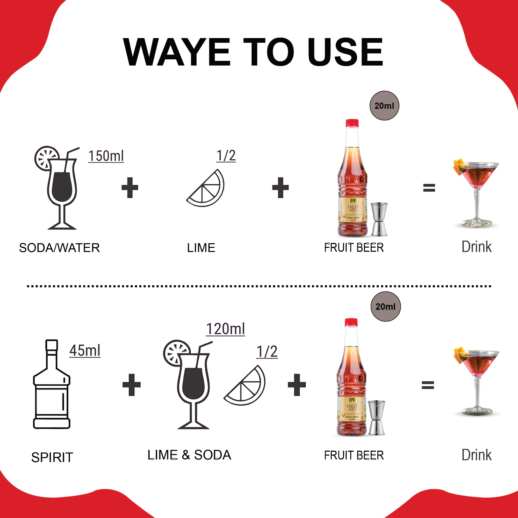 FRUITALES Fruit Beer Syrup is a versatile syrup formulated to hold up in heat and resist curdling in dairy products. It blends well into smoothies sodas mocktails and teas- so you become a pro bartender right in the comforts of your home. Make refreshing sodas mocktails cocktails shakes slushes & fruit punches and use as a topping on ice creams and fruit salads. FRUITALES Syrups come in tempting flavors that complement your beverages without overpowering them or being too sweet. They are easy to use and can be used in hot and cold drinks. FRUITALES Syrups come in user-friendly bottles that are convenient for your busy baristas to use. They find multiple applications in coffee syrups flavour frappes cocktails mocktails smoothies milkshakes floats ice creams sherbets and more! -Approx. dilution guidance: 1:4 -No High Fructose Corn syrup | GMO free | | -Made in an ISO: 9001and FSSAI certified food facility. -India's most popular bar syrup- use to make refreshing sodas mocktails cocktails shakes slushes & fruit punches and use as a topping on ice creams and fruit salads. Made in India by a farmer-led enterprise the production work is done by local farmers especially women who take immense pride in creating products that add value to the lives of our consumers. Marginal farmers sell us their raw produce locally and no longer must struggle with middlemen strict mandi bargains or distress sales. Support the Indian Farmer. Please note: If you are on heart or sugar medication do check with your doctor to make sure that this product does not interfere with your meds. Remember to have in moderation. Product packaging may be changed by company at any point in time without any notification.