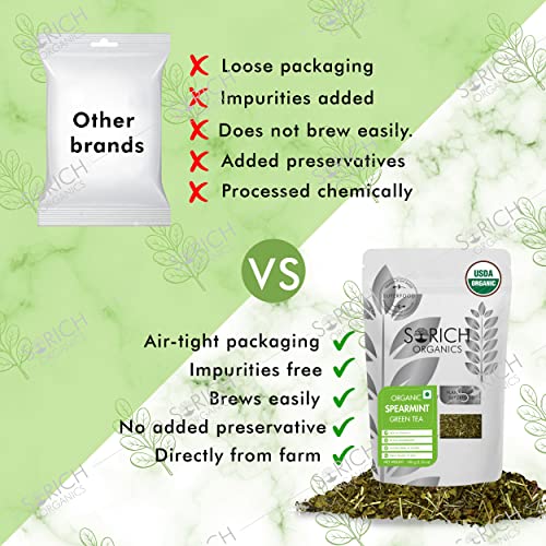 Your perfect post-meal companion take a cup of spearmint green tea and freshen yourself with the sublime aroma of this blend. Let its stimulating qualities give you the pick-me-up you need regardless of the time of day. Green tea loaded with antiand it helps your body's and while its most often found in toothpastes and mouthwashes spearmint is more than just for freshening your mouth. It is high in Vitamin A iron and varied antiand has excellent and capabilities. Sorich uses fresh and organic spearmint leaves and infuses them with quality green tea and this blend contains no ed sugars artificial itives or .