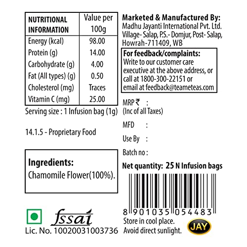 INFUSION TEA PROFILE: Our Chamomile product does not contain any tea i.e it is 100% caffeine free and it may help in good sleep. Some other may contain green tea in chamomile and hence is not caffeine free which may hinder good sleep. Our infusion has a c