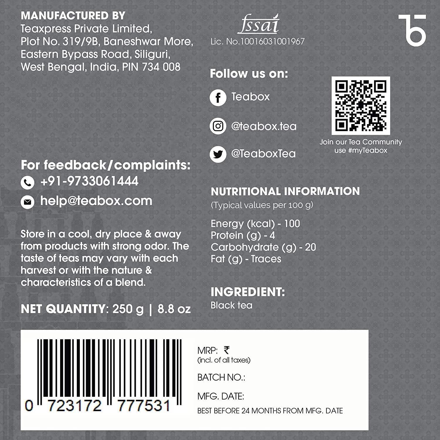 HomeGroceryBeveragesTeaTeabox Fresh Kadak Chai 250 g Vacuum Sealed Pack for Freshness | Sourced From The Estates Of Assam & Dooars | Strong and Premium CTC Chai |Requires 20% Less Sugar| Strong Taste and Aroma