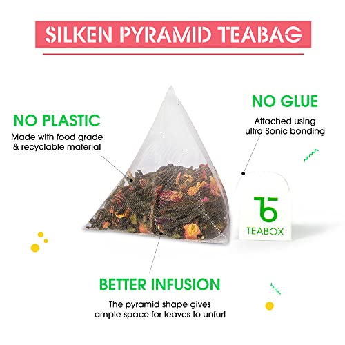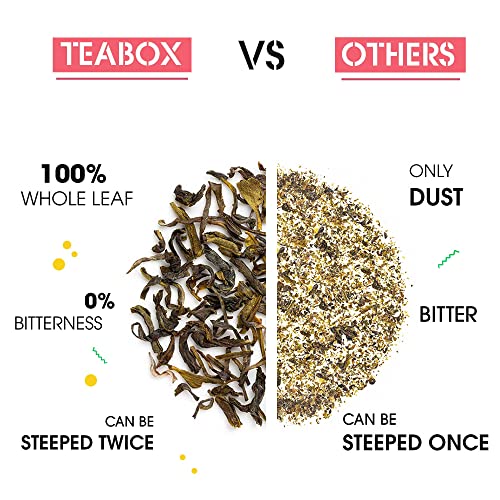 ABOUT Teabox: Teabox offers the highest grade whole leaf green teas without dust or fannings and is blended with 100% natural ingredients for a smoother green tea experience with no bitterness