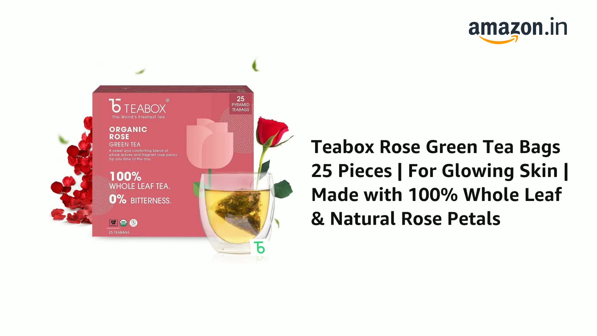 Teabox Rose Green Tea Bags 25 Pieces. For Glowing Skin. Made with 100% Whole Leaf & Natural Rose Petals