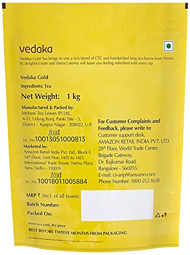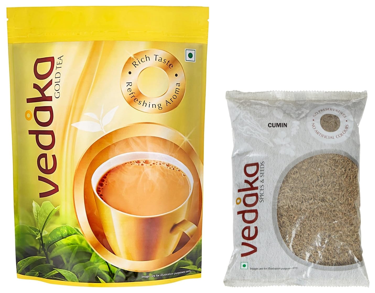 Vedaka Gold Tea 1 kgVedaka Gold is made from high quality leaves perfectly blended using state of the art technology to give you a rich and smooth taste to start your morning right. Enjoy the rich flavor of tea leaves coupled with rich aroma to elevate your daily tea- drinking experience. Available only on Amazon and Amazon Pantry.Vedaka Whole Cumin 500gAll vedaka spices are hygienically packed and undergo rigorous laboratory tests to meet stringent food safety norms.