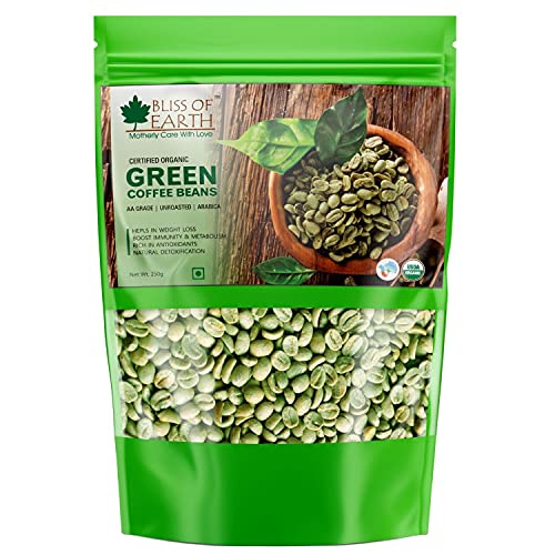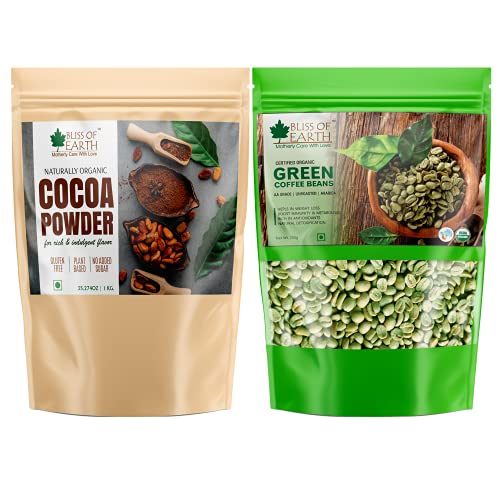 Bliss of Earth Naturally Organic Cocoa Powder is the perfect companion to any health concious kitchen. From holiday desserts and everyday baking to a steaming cup of cocoa on those chilli mornigs our cocoa powder offers a guil-free way to satisfy your sweet tooth without the high amount of sugar fat and preservatives which are commonly available in other mixes. In addition to its rich and indulgent flavor it is non-alkalinized and also has naturally occuring cocoa flavonols (polyphenols). Green Coffee Beans Find yourself being drawn to a cup of piping hot coffee every morning immediately after waking up? Thats a cause of hyperacidity folks. But we arent asking you to sacrifice your cup in lieu of better health. In fact you can guzzle coffee uninhibitedly albeit a healthier one! Healthier? Yes. A lesser known but highly health-promoting avatar of the same is ready when brewed from Green coffee beans. The unroasted seeds of the plant Coffea Arabica Green coffee beans overflow with antioxidants that battle it out with free radicals that speed up skins ageing. Now that is something which your regular coffee doesnt do for its antioxidant profile is snuffed during the process of roasting natural coffee beans something green coffee beans do not have to undergo. It cleanses our liver freeing it from toxins bad cholesterols and unnecessary fats. A healthy liver henceforth enhances our metabolism leading overall better health. Laden with fatty acids and esters including Arahidic Acid Linoleic Acid and Oleic Acid Green Coffee Beans help prevent skin sagging droopiness and wrinkle formation. All of this contributes to a younger radiant and more vibrant skin. Its time you switch to a cleaner healthier lifestyle with Bliss of Earths USDA Organic Green Coffee Beans. Be guilt-free while gulping down a cuppa coffee!