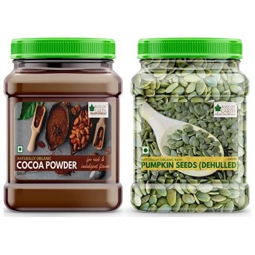 Bliss of Earth Combo of Naturally Organic Dark Cocoa Powder (500gm) for Chocolate Cake Making and Dehulled Pumpkin Seeds (600gm) for Eating & Weight Loss Naturally Organic Superfood