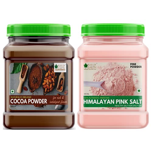 Bliss of Earth Naturally Organic Cocoa Powder is the perfect companion to any health concious kitchen. From holiday desserts and everyday baking to a steaming cup of cocoa on those chilli mornigs our cocoa powder offers a guil-free way to satisfy your sweet tooth without the high amount of sugar fat and preservatives which are commonly available in other mixes. In addition to its rich and indulgent flavor it is non-alkalinized and also has naturally occuring cocoa flavonols (polyphenols). Himalayan pink salt is non-GMO and does not contain any msg gluten or anti-caking agents. It is sourced from the Himalayan range of punjab region in Pakistan.Himalayan pink salt is well known for its amazing health benefits. It re-mineralizes the body with minerals and trace elements essential to our health and well being. Our himalayan pink salt is rich in trace minerals - including calcium magnesium potassium copper and iron Loaded choc a bloc with 84 different kinds of trace elements since table salt is generally heavily refined and mixed with anti-caking agents to prevent clumping Himalayan Pink Salt is comparatively more natural and devoid of additives.