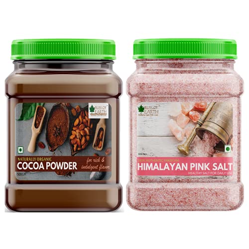 Bliss of Earth Naturally Organic Cocoa Powder is the perfect companion to any health concious kitchen. From holiday desserts and everyday baking to a steaming cup of cocoa on those chilli mornigs our cocoa powder offers a guil-free way to satisfy your sweet tooth without the high amount of sugar fat and preservatives which are commonly available in other mixes. In addition to its rich and indulgent flavor it is non-alkalinized and also has naturally occuring cocoa flavonols (polyphenols). Himalayan pink salt is non-GMO and does not contain any msg gluten or anti-caking agents. It is sourced from the Himalayan range of punjab region in Pakistan.Himalayan pink salt is well known for its amazing health benefits. It re-mineralizes the body with minerals and trace elements essential to our health and well being. Our himalayan pink salt is rich in trace minerals - including calcium magnesium potassium copper and iron Loaded choc a bloc with 84 different kinds of trace elements since table salt is generally heavily refined and mixed with anti-caking agents to prevent clumping Himalayan Pink Salt is comparatively more natural and devoid of additives.