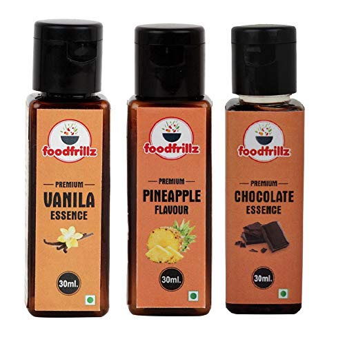 foodfrillz food essence flavours combo pack of 3 is a handy must have flavouring combo set for meeting all baking and dessert needs delivering quality and flavour in a flip top bottle of 30 ml each