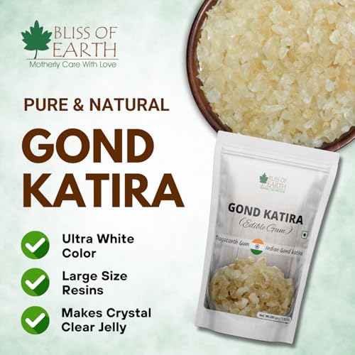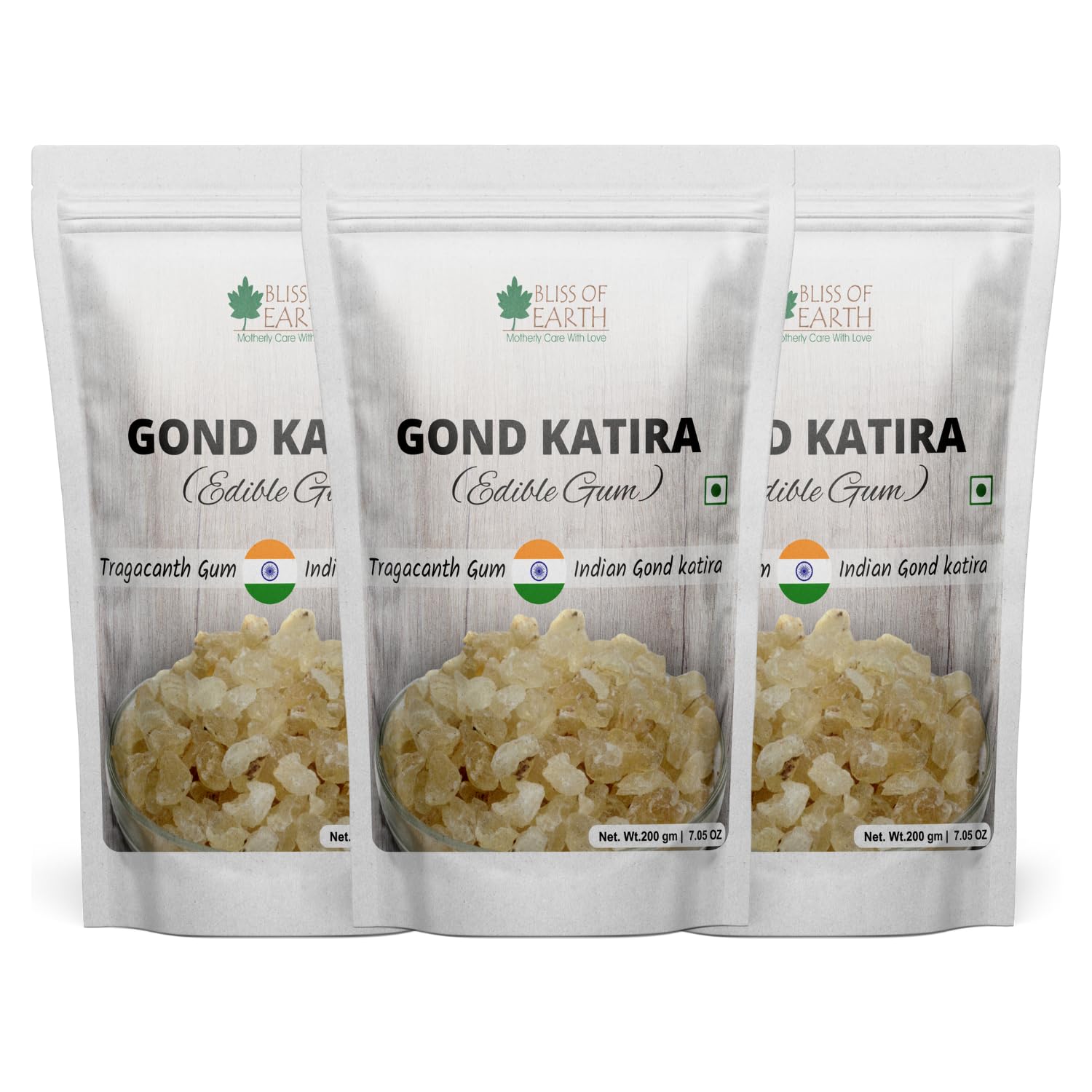 Bliss of Earth gond katira is a natural gum obtained from the dried sap of several species of Middle Eastern legumes of the genus astragalus .gond katira is a viscous odorless tasteless water soluble mixture of polysaccharides obtained from sab that is drained from the root of the plant and fried the gum seeps from the plant in twisted ribbons or flakes that can be powdered it absorbs water to become a gel which can be stirred into a paste .