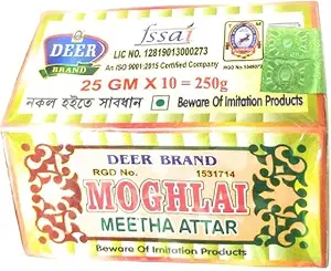 Deer Brand Moghlai Meetha Attar use in veg & nonveg Biryani Kuska Khsuka Pulao Polao Mutton Chicken Qurma Korma QaliaQualia kababs also for sweet dishes Deer Brand Moghlai Biryani Attar use in veg & nonveg Biryani Kuska Khsuka Pulao Polao Mutton Chicken Qurma Korma QaliaQualia kababs also for sweet dishes Meetha (Mitha) Attar works as Flavoring agent or essence for rice related dishes. A drop of Mitha Attar is must in Mughlai dishes. Pure Mughlai Biryani Flavour Edible grade. A drop of Mitha Attar is must in Mughlai dishes. Pure Mughlai Biryani Flavour Edible grade. Its most popular use is as a flavoring agent. DEER BRAND Royal Mughlai Meetha (Mitha) Attar for Biryani cooking Rice Dishes Moghlai Dishes is incomplete without a Drop of Meetha Attar