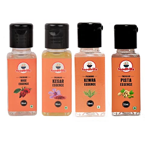 foodfrillz Pista Rose Kewra & Kesar Pack of 4 Food Flavour Essence 30 ml x 4