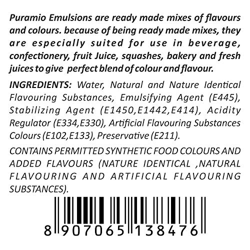 Puramio Emulsions are ready made mixes of flavours and colours Because of being ready made mixes Emulsions have more potent to make thick flavoured based drinks Bakery Flavoring Emulsions- more flavorful than an extracts! Professional bakers almost used emulsions to make breads cake batters cookie dough's frostings fondants ganaches fillings etc.