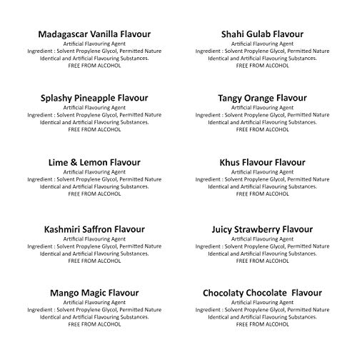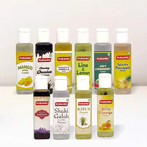 Puramio Liquid Food Concentrated Flavours (Pack of 10 x 30ml each) (VANILLA ROSE PINEAPPLE ORANGE LEMON KHUS SAFFRON STRAWBERRY MANGO CHOCOLATE)