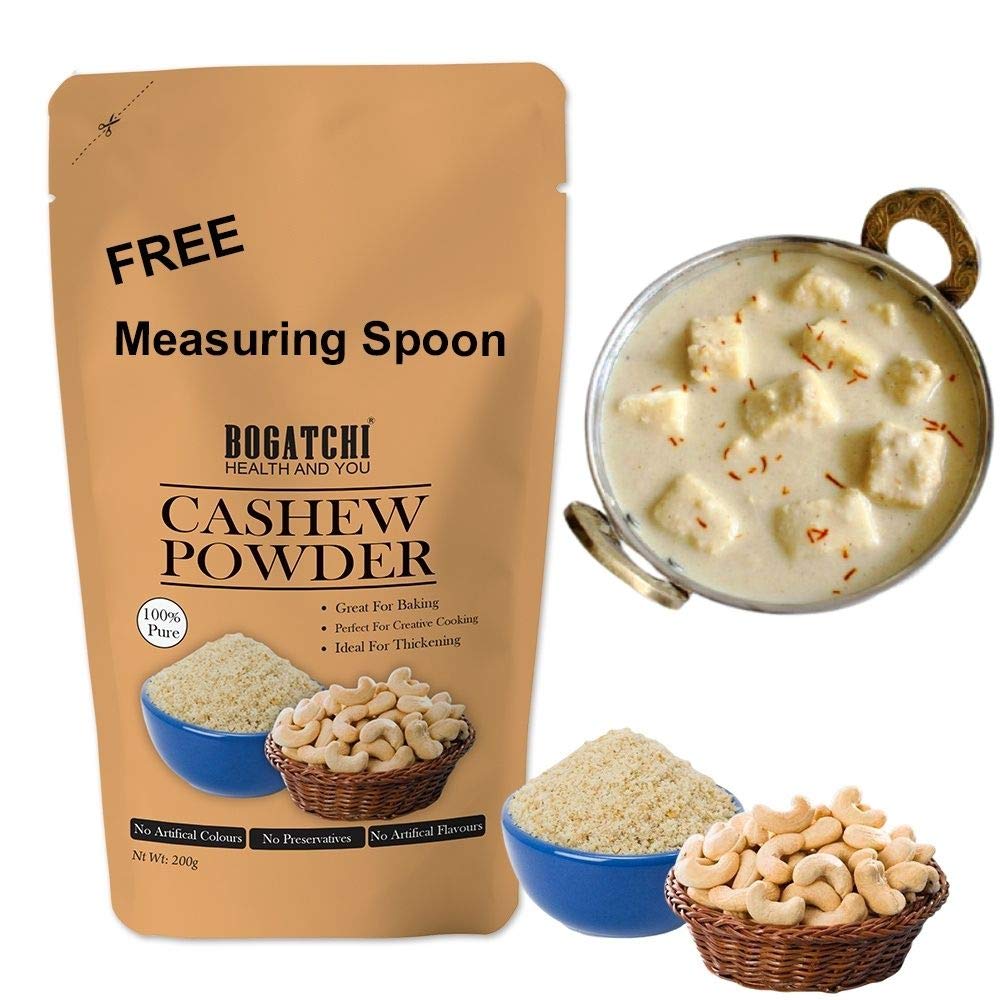 BOGATCHI Cashew Powder for Making - Curry Paneer Sabzi White Gravy Malai Kofta Dum Aloo White Chicken Kaju Shake Ice Cream 200g Free Measuring Spoon