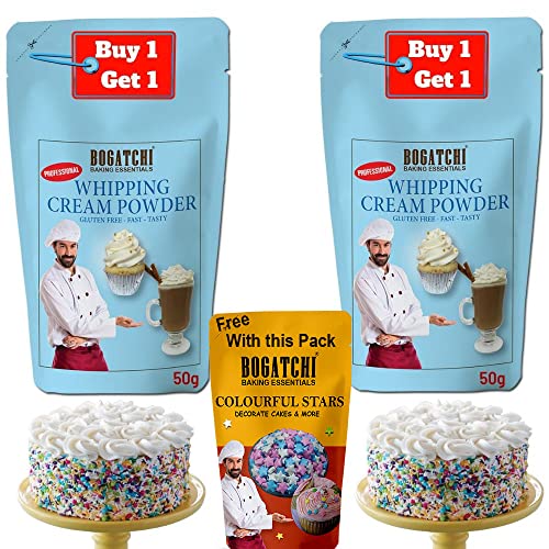 BOGATCHI Whipping cream for cake Whipping Cream Powder Whipped Cream Rich Whipping cream Premium Whipped cream powder- FREE One Extra Whipping Cream Powder(50g)+ Colorful Stars (20g)