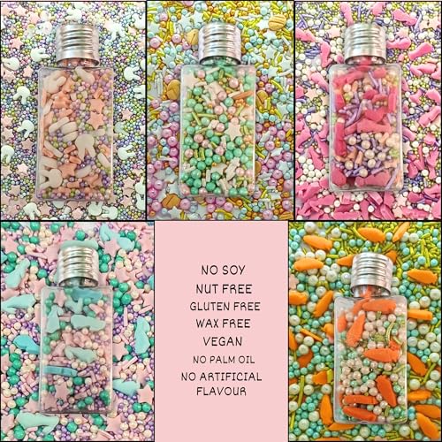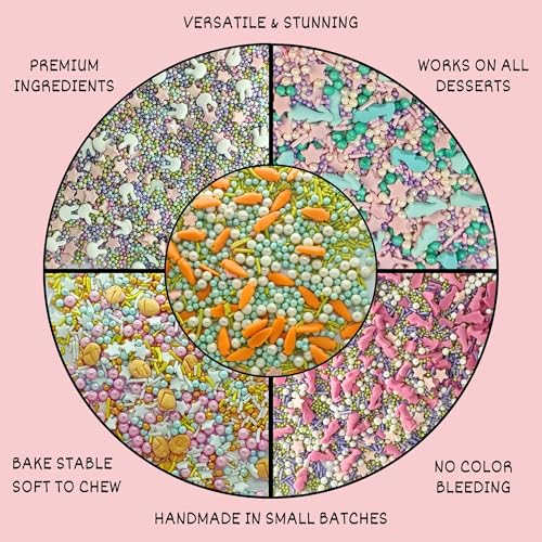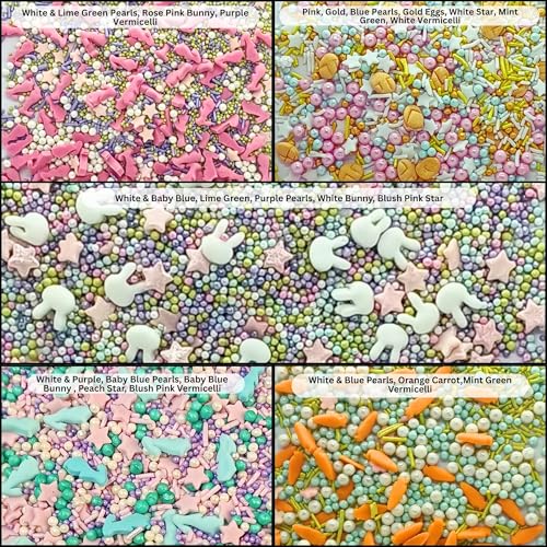HomeGroceryCookingBaking SuppliesFrosting, Icing & DecorationsConfect Easter Sprinkles Edible | Assorted pack of 5 Pink White Green and Blue Pearls & Stars I Cookies Desserts & cupcake Decorating | Edible Sprinkles Mix for Baking & Cake Decorative -3.5 Oz
