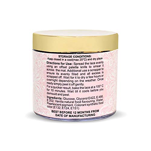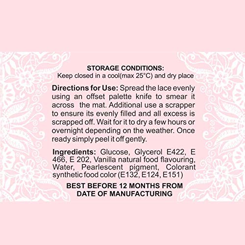 Spread the Lace Evenly using an offset palette knife to smear it across the mat.Use a scrapper to ensure its evenly filled and all excess is scrapped off. Wait for it to dry a few hours or overnight depending on the weather. Once ready simply peel it off gently.