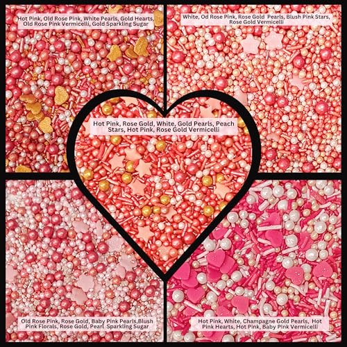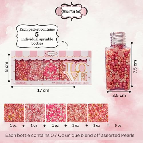 Confect Pink White and Gold Sprinkles | Heart Sprinkles | Flowers & Heart Sprinkles | Sprinkles for Baking & Cake Decorative | Spring Sprinkles | Cookie sprinkles | Edible sprinkles Mix Pack of 5 - 140gms