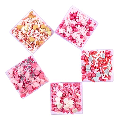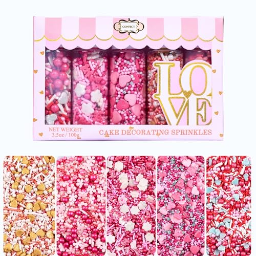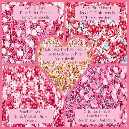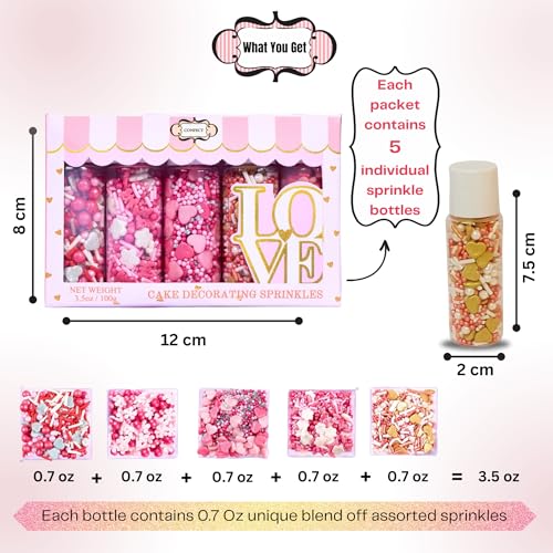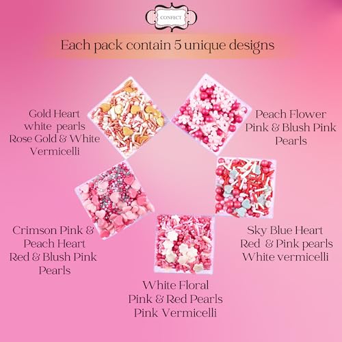 Confect Pretty in Pink Gold & White Pearls Sprinkles | Sprinkles for Baking & Cake Decorative | Cookie sprinkles | Birthday Sprinkles | Spring Sprinkles | Hearts Edible sprinkles Mix Pack of 5 - 100gms