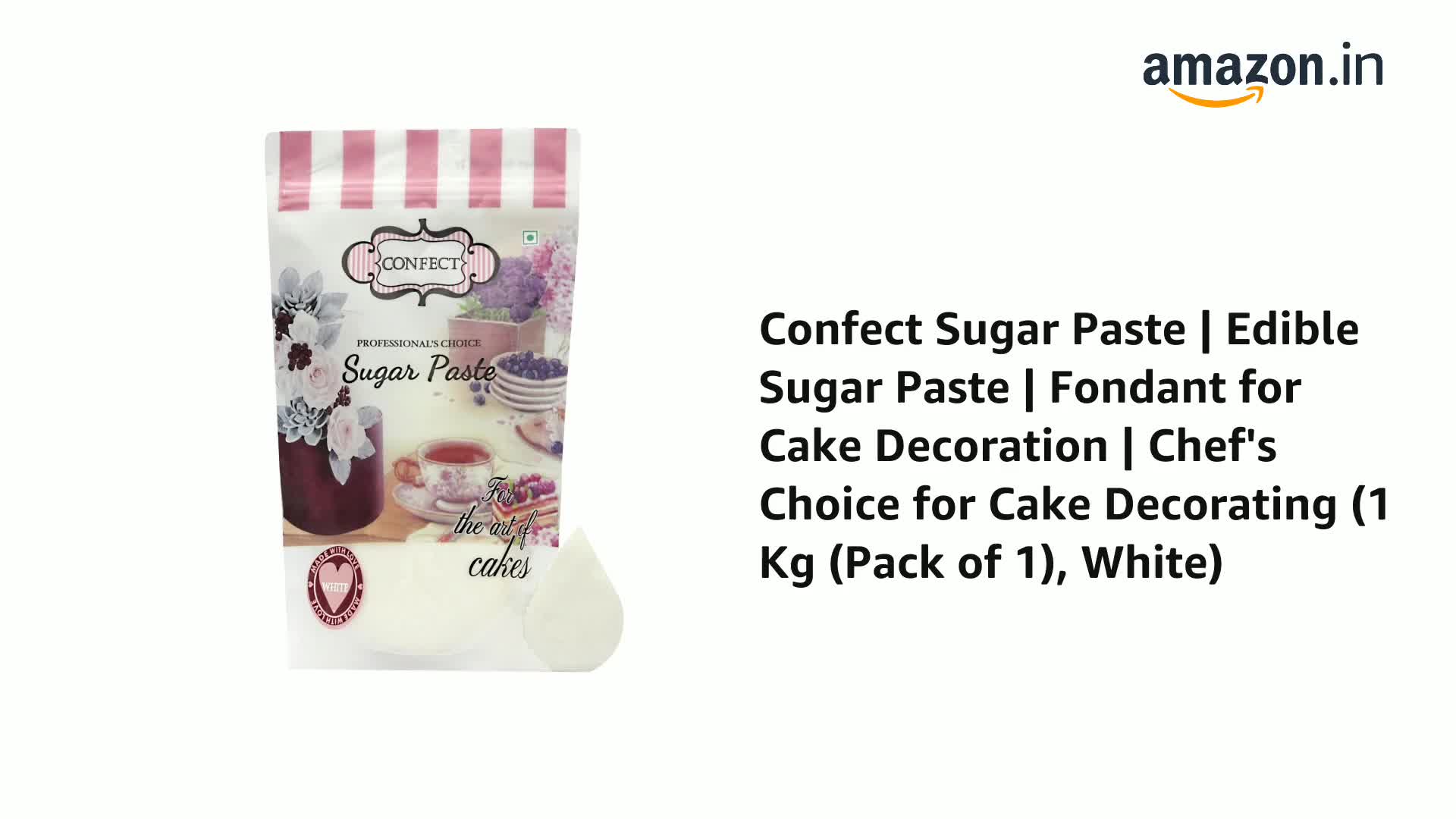 Confect Sugar Paste | Edible Sugar Paste | Fondant for Cake Decoration | Chef's Choice for Cake Decorating (1 Kg (Pack of 1) White)