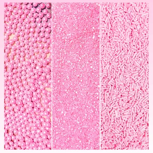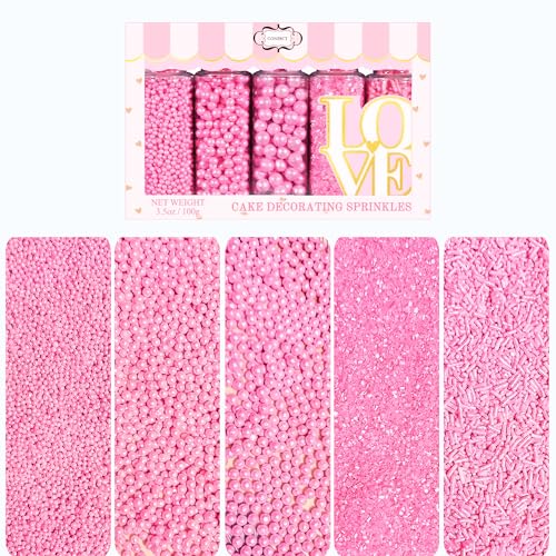 Confect Valentines Sprinkles | Sprinkles for Cakes & Cupcakes Decoration | Pearl Sprinkles | Baby Pink Sprinkles | Edible Mix Dragees Jimmies & Sparkling Sugar - 140GMS
