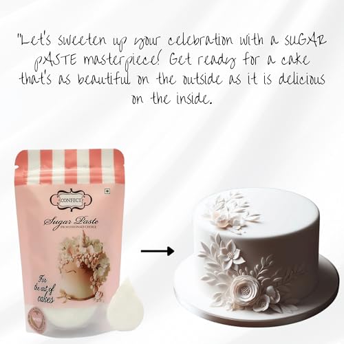 Confect White Sugar Paste & Fondant for Cake Decoration | White Fondant for cake decoration | Chef's Choice Sugar Paste For Cake Decoration - 250 gms