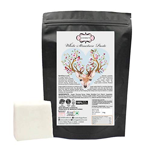 Confect Sugarpaste for structure is a dream come true for those last minute orders with toppers like barnyard animals basic figurines etc. It tastes like vanilla marshmallow making these adorable toppers a pleasure to eat! It is unlike most other structure pastes & is deceptively soft & pliable to work with making it very easy to work with especially for beginners! It dries quick but not so quickly that a beginner would have trouble working with it.