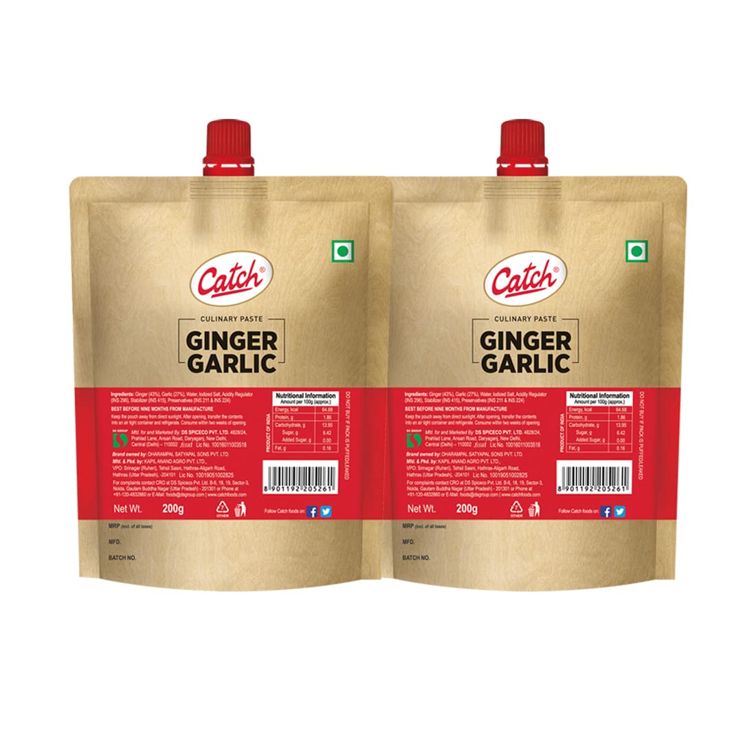 Catch Ginger Garlic Paste is ready to use. The aroma and taste makes it a preferred addition to a range of Indian Chinese and continental dishes. Cut down your preparation time with thick and Grainy paste ensuring a perfect gravy of your dish. No added colour.