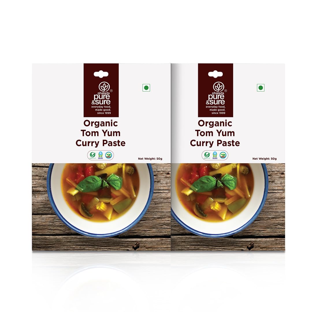Pure & Sure Organic Tom Yum Curry Paste | Natural Curry Paste | Made with Thai Ingredients | Ready to Cook/Use | Aromatic & Tasty | No Preservatives | 50gm (Pack of 2)