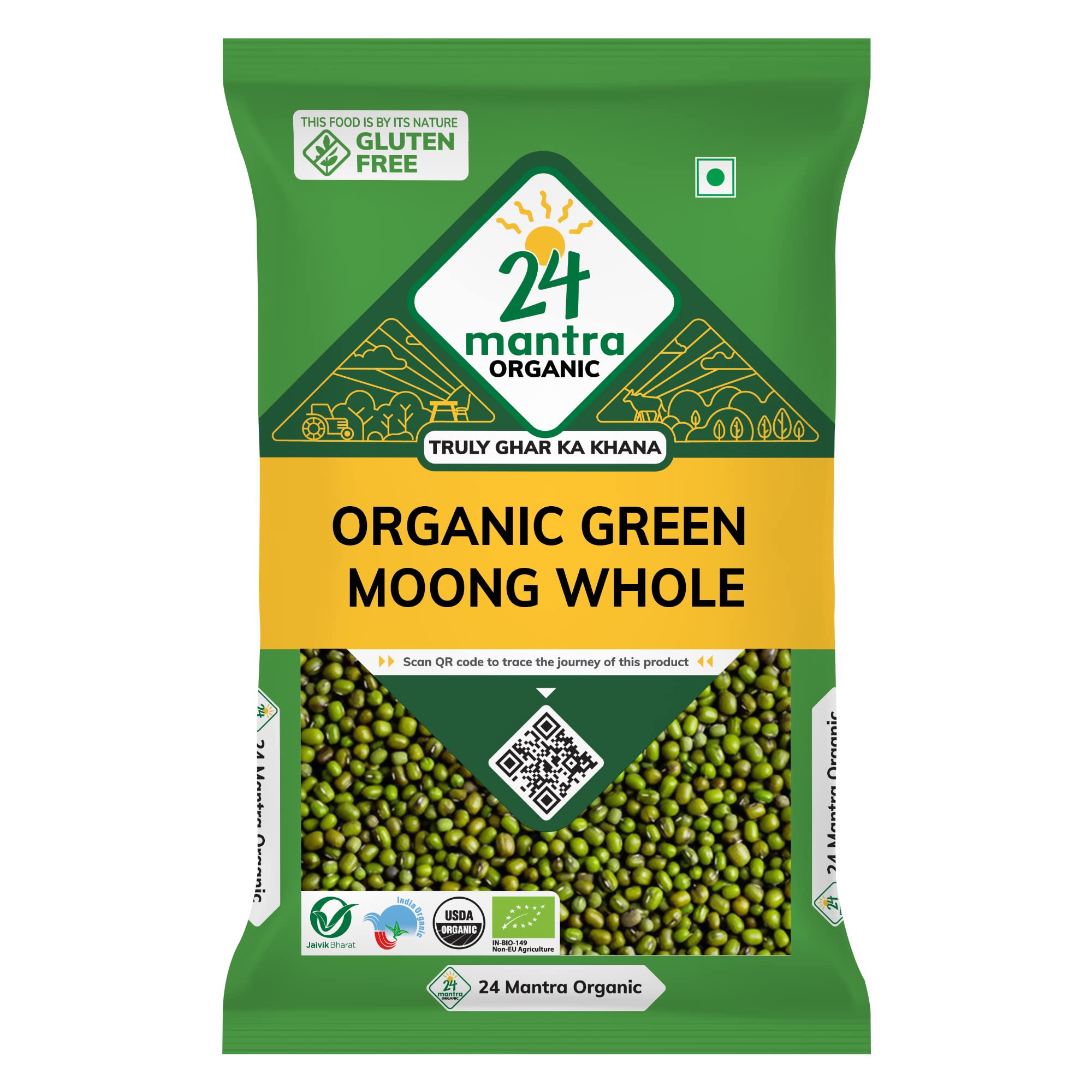 Pulses are a boon to vegetarians and vegans. Whole Green Moong or sabut/saboot Green Moong is good sources of proteins especially for vegetarians and vegans. Our 24 Mantra Organic Whole Moong Green or Sabut/Saboot Green Moong cooks easiest compared to other whole legumes. 24 Mantra Whole Moong Green is a good source of plan protein. Sabut/Saboot Moong Green helps to manage glucose and cholesterol levels in blood. It is a good source of plant protein. Therefore advantageous in reducing risk of heart related problems.