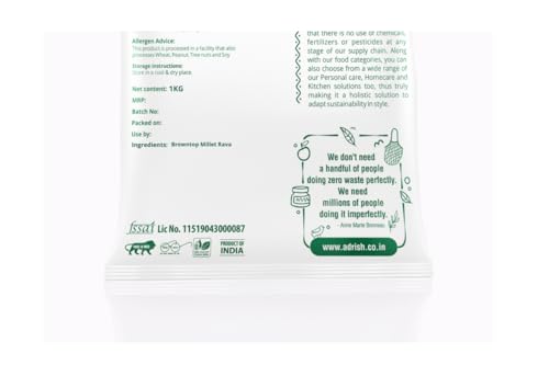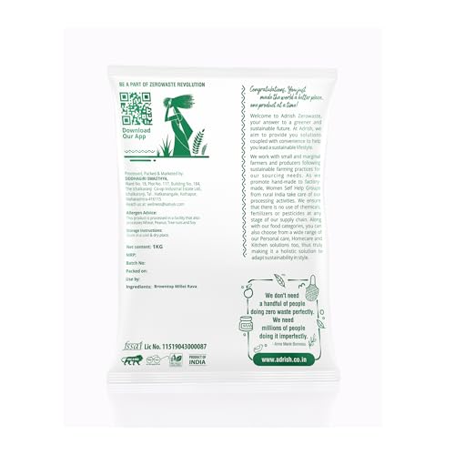 Adrish Zerowaste Organic Browntop Millet Rava (1000gm) - Unpolished Millet Suji | Stoneground Millet Rava Upma | Browntop Millet Upma Rava | High Plant Protein & Fiber