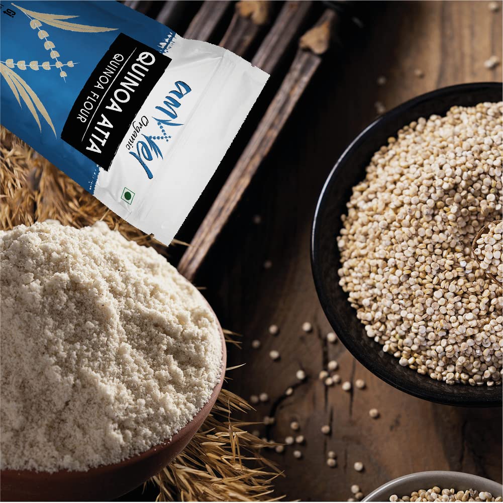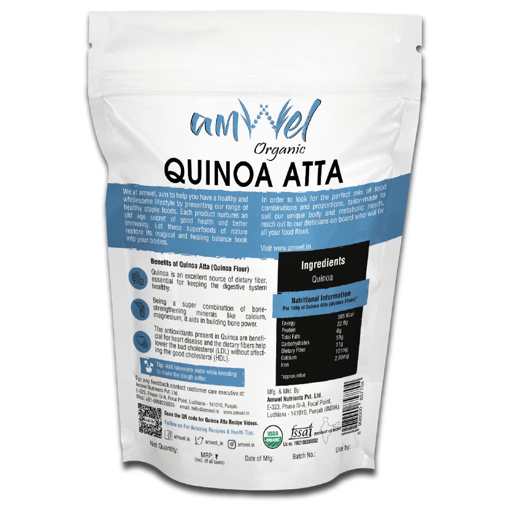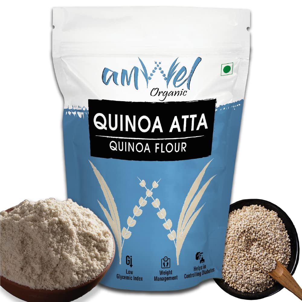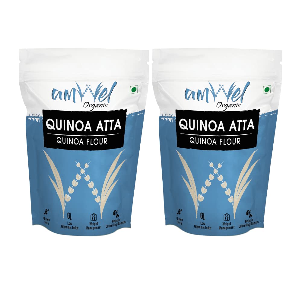 We at amwel aim to help you have a healthy and wholesome lifestyle by presenting our range of healthy staple foods. Each product nurtures an old age secret of good health and better . Let these superfoods of nature restore its magical and healing balance book into your bodies. Quinoa flour ( Quinoa Atta) is an excellent source of dietary fiber essential for keeg the system healthy contributing to healthy bowel movements. Being a super combination of bone-strengthening minerlike calcium magnesium phosphorus manganese it in building bone power. The antipresent in Quinoa Flour / Quinoa Atta are beneficial for and the dietary fibers help lower the bad (LDL) without affecting the good (HDL) organic multigrain quinoa qunoa qunioa kinoa health atta flour drink dalia bread porridge noodles for