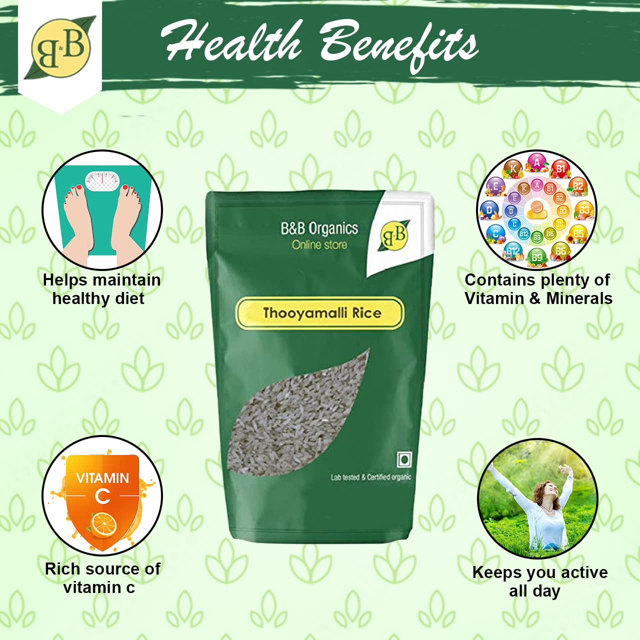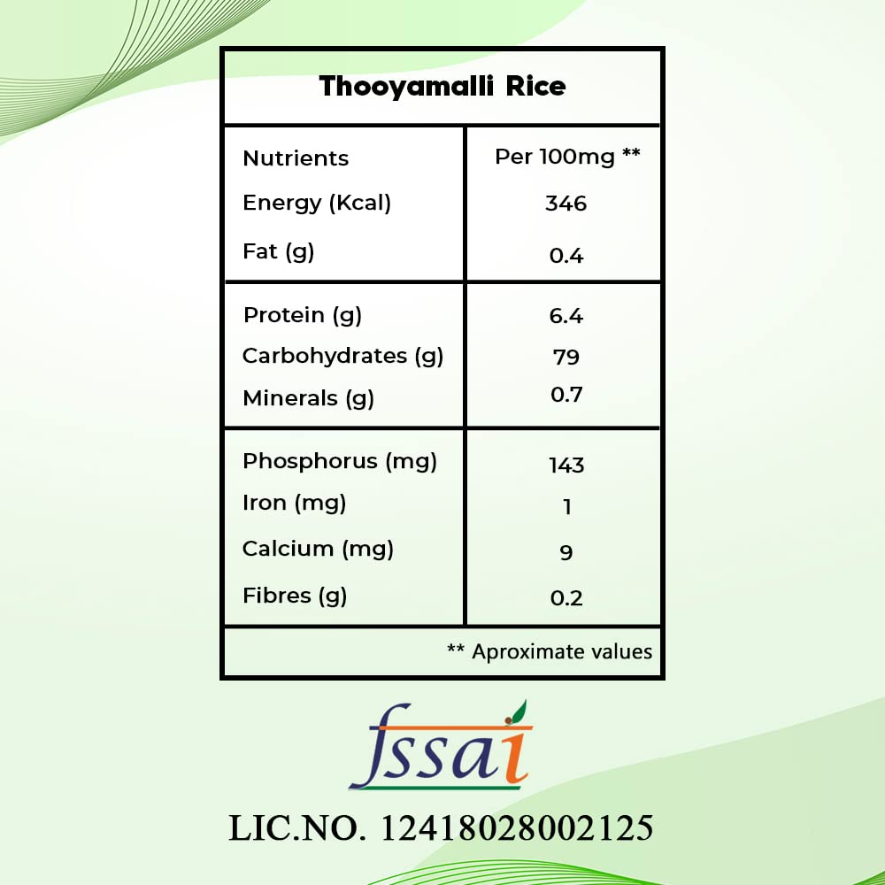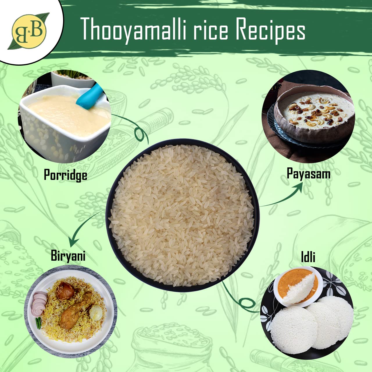 Thooyamalli rice is an ancient traditional rice variety from Tamil Nadu named after its pearl-like appearance ("Thooya" meaning pure and "Malli" meaning jasmine in Tamil). This rice is known for its unique texture and fragrance making it a prized choice for health-conscious individuals. The grains are medium-sized and non-sticky providing a light and fluffy texture when cooked.