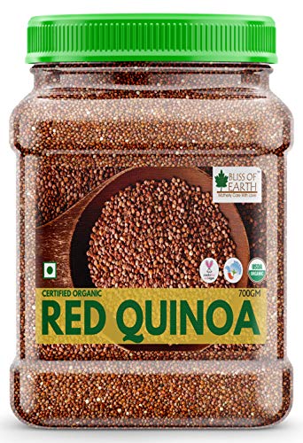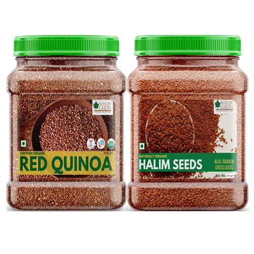 Bliss of Earth Naturally Organic Halim seeds also known as Haleem or Aliv are garden cress seeds loaded with many health benefits and nutritional qualities. These seeds were considered as an important nutritional and medicinal plant in India since the Vedic era (between 500? 1700) B.C. Halim Seeds are good source of protein fiber phenolic acids and so many nutritional compounds and considered as a functional foods that promote overall health and well-being while keeping diseases at bay apart from providing nutrition. Bliss of Earth Certified Organic Red Quinoa is one of the most popular healthfood. Its high in protein fiber magnesium B vitamins iron potassium calcium phosphorus vitamin E and various beneficial antioxidants. Its also one of the few plant foods that contain sufficient amount of all nine essential amino acids.
