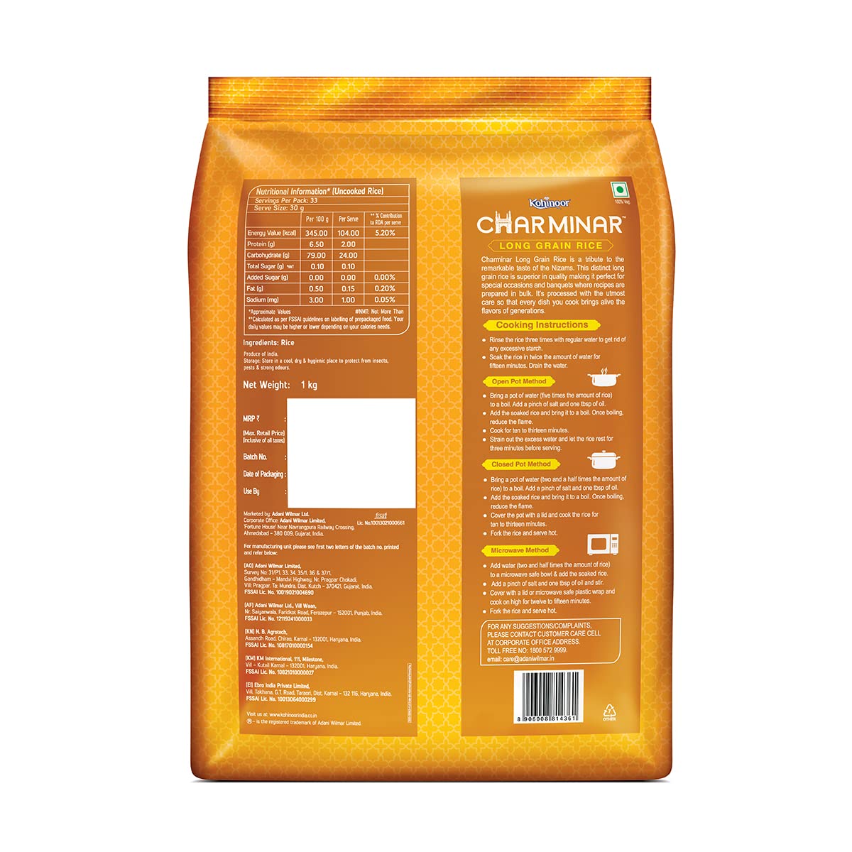 As brand Kohinoor Charminar is a well-defined blend to delight you and your family at every meal and every occasion. Carefully processed in a world class manufacturing facility for daily consumption its long and delicate grains are processed with expertise to preserve their distinct aroma. Charminar Long Grain rice delivers a flavorful and wholesome meal at an price in line with the brandâs mission of making everyday meals memorable. Ideal for occasions like banquets marriages parties etc. where rice and pulao are served these value rice grains help you bring home the flavor of basmati and also ensures that every dish you cook has a touch of royalty. We at Kohinoor go the extra mile to give you the best - from selecting the fields through a scientific approach to choosing the finest rice grains - we pursue excellence at every step. And we donât export reserving the best quality for the Indian subcontinent. After all Kohinoor is committed to the tradition of bringing authentic Indian flavors to your table. Kohinoor Charminar Rice invites connoisseurs like you to indulge in the magnificent experience and make every meal moment truly special.