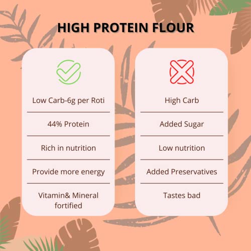 G growfit High Protein Flour 44% (500gm) Soy & Preservative Free High Protein Low Carb & Helps Build Muscle & Recovery For Roti Bread Pizza Cake etc Contains Wheat Oats Groats Black Rice Jackfruit Amaranth Flax and Pea protein