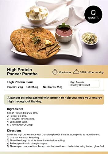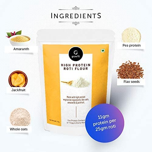 HomeGroceryCookingOrganic Flours, Rice & PulsesG growfit High Protein Flour 44% (500gm) Soy & Preservative Free High Protein Low Carb & Helps Build Muscle & Recovery For Roti Bread Pizza Cake etc Contains Wheat Oats Groats Black Rice Jackfruit Amaranth Flax and Pea protein