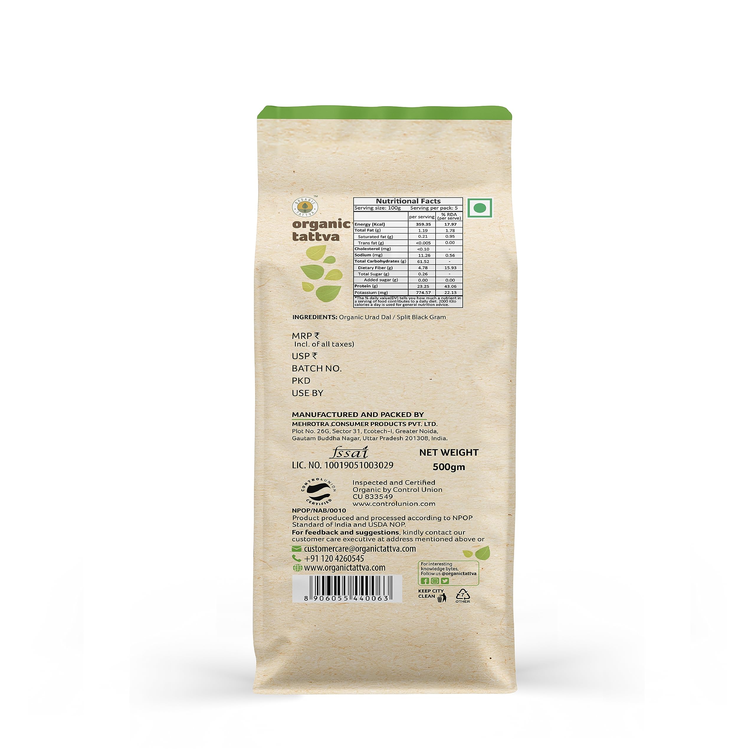 Organic Urad Dal Black Split is also known as the queen of all dals is a perfect compliment to your healthy diet. Organic Urad Dal Black has greyish black beans and is packed with nutrients. Organic Tattva's Organic Urad Dal Black is full of iron calcium and protein. Along with these nutrients a bowl of Organic Urad Dal Black also contains dietary fibres sodium and all the other nutrients that are required for your body. A 100g serving of Organic Urad Dal Black contains 0g trans fat and 0g sugar. The calorie count per serving of Organic Urad Dal Black Whole is 293.12. If leading a healthy life is your mantra then switch to Organic Urad Dal Black Split by Organic Tattva today!