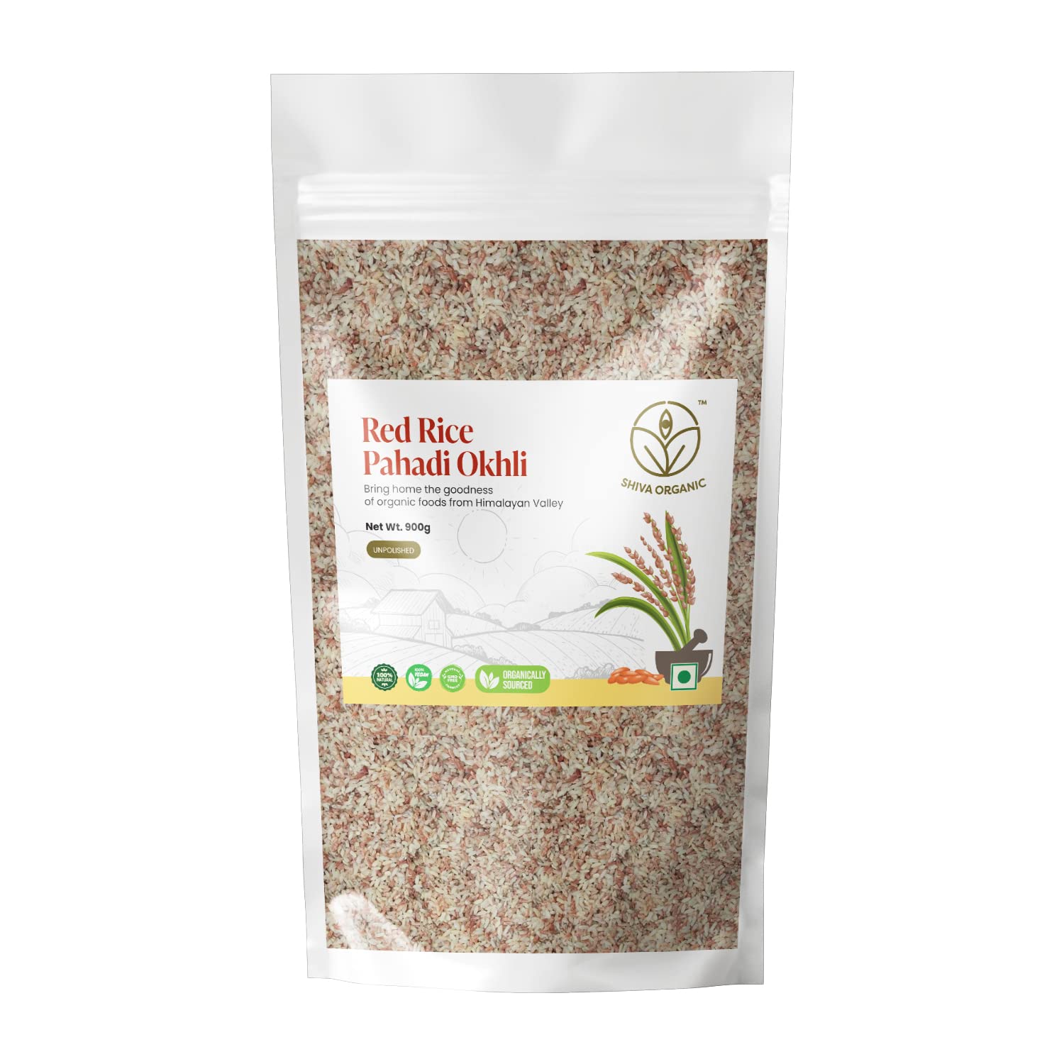 Shiva Organic Himalayan Red Rice 900 grams - Unpolished | High Protein Fibre & Iron | Gluten Free | Perfect Alternative For Regular Rice - Sourced from Uttarakhand
